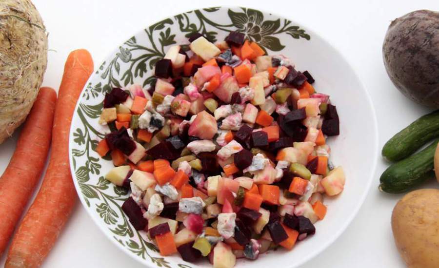 Винегрет представляет собой очень здоровое, вкусное и питательное блюдо. Этот салат обычно готовится из доступных продуктов и имеет много вариантов их сочетания. Предлагаем вашему вниманию интересный рецепт винегрета с сельдью и сельдереем в качестве самостоятельного блюда или аппетитной закуски.