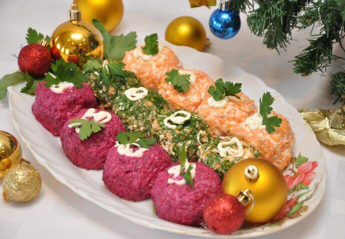 Готовим порционный салат в шариках «Новогодние игрушки»