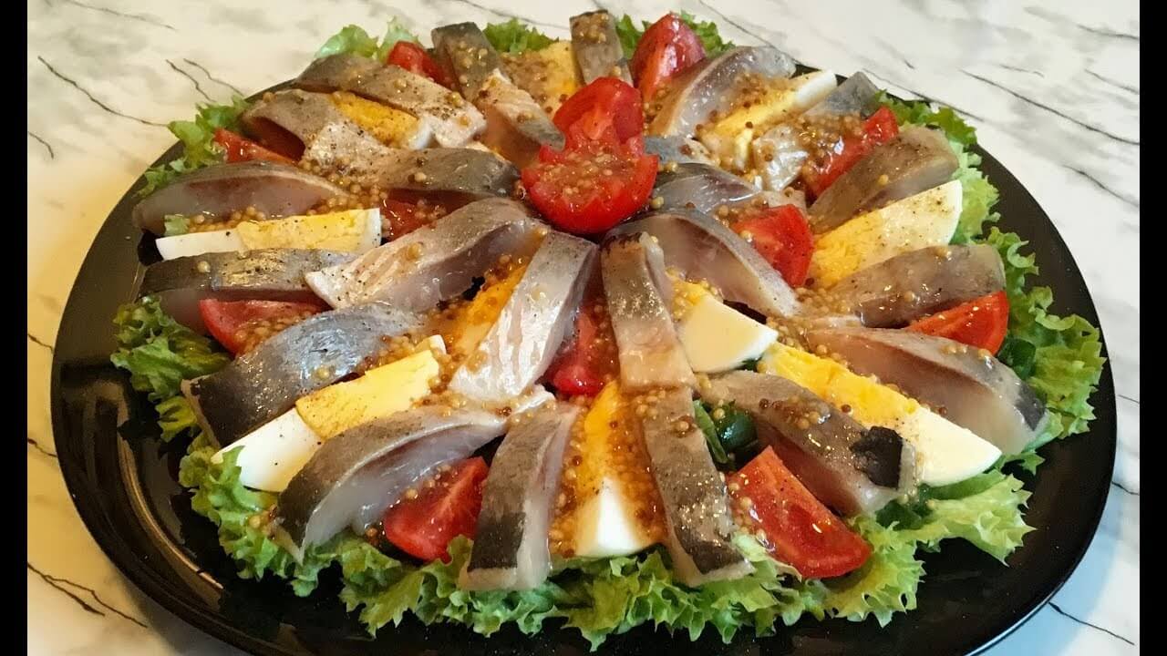 Салат из сельди, яиц и помидоров состоит из обычных продуктов повседневного употребления, но выглядит очень красиво и вкус имеет замечательный. Особый пикантный оттенок вкуса придает блюду горчичная заправка. Салат идеально подойдет тем едокам, которые не любят майонез, так как заправка его полностью заменяет. Оригинальный, свежий и сочный салат понравится вам и вашим гостям.
