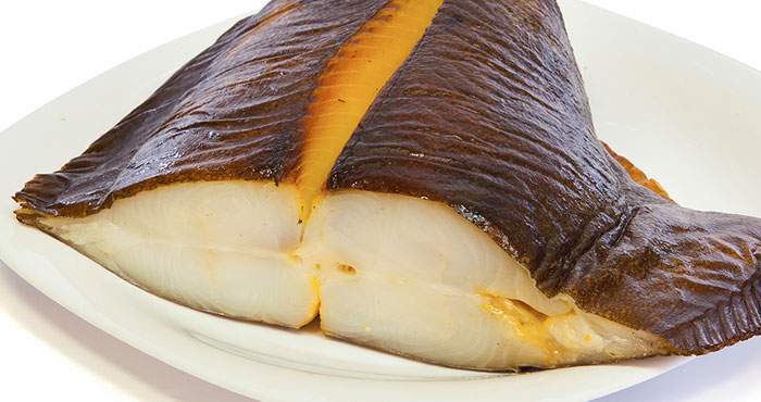 Мясо палтуса белое. Оно очень вкусное, жирное, мягкое, нежное, практически без костей.
