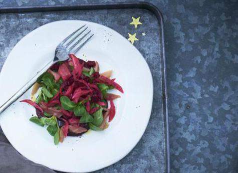 3. Теперь смешайте свеклу с оливковым маслом и шалотом, приправьте солью и перцем по вкусу. Уберите тарелку со свеклой на полчаса в холодильник.