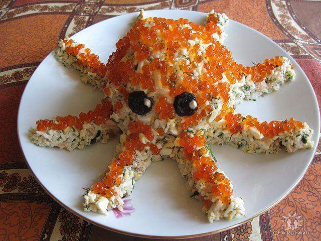 Готовим салат «Осьминожка» с красной икрой