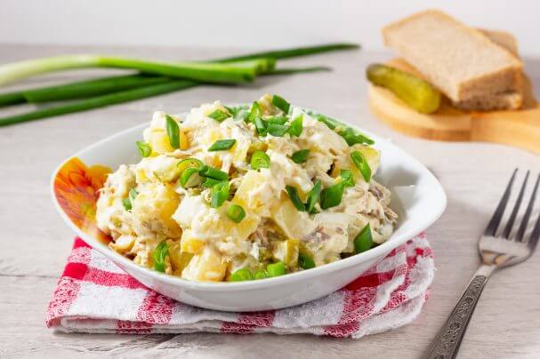 Усім, хто любить рибу у вареному, смаженому, солоному та копченому вигляді, сподобається ідея використовувати цей продукт як інгредієнт салату. Копчену рибу ідеально доповнить картопля у поєднанні з маринованими огірками та цибулею. Пропонуємо до вашої уваги рецепт салату з рибою гарячого копчення.