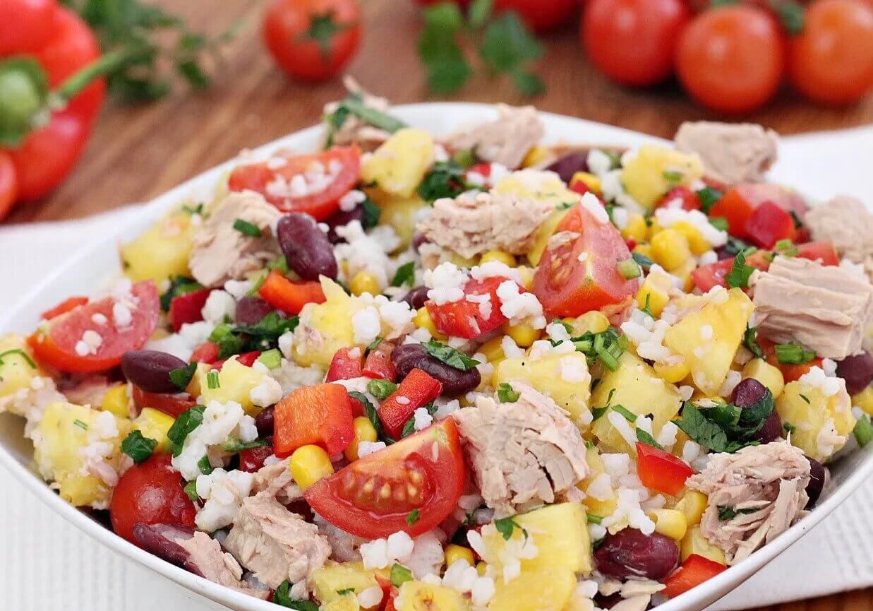 Готовим салат с тунцом, рисом и ананасом