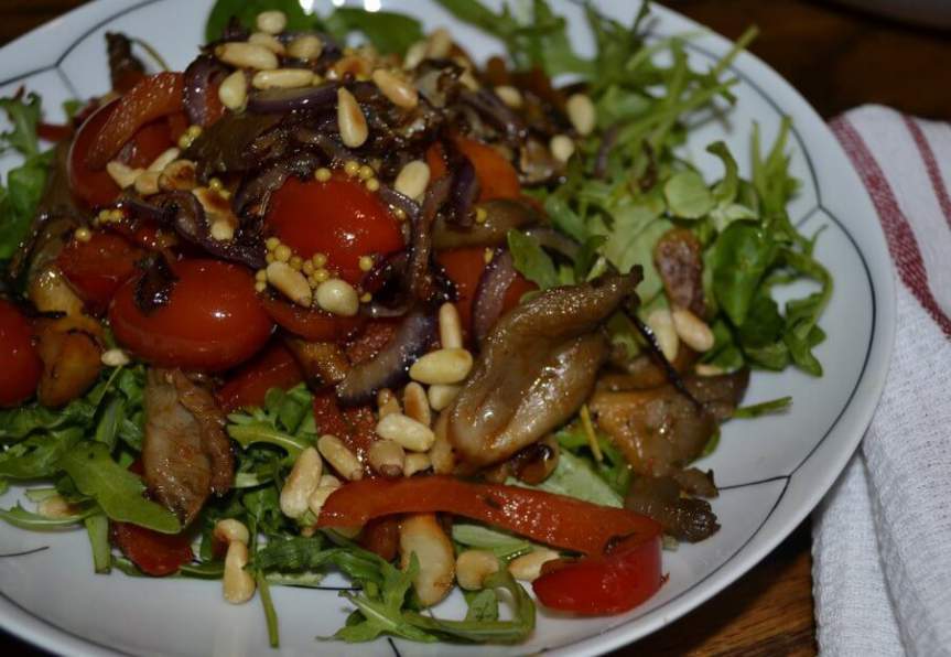 Готовим салат из вешенок с помидорами и кедровыми орехами