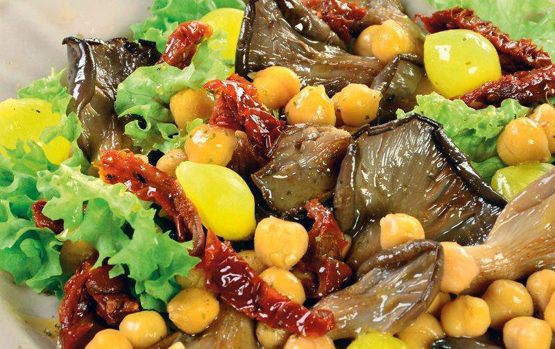 7. Салат с вешенками и нутом под горчичным соусом лучше подать, пока грибы теплые. Но и в холодном виде он очень вкусный.