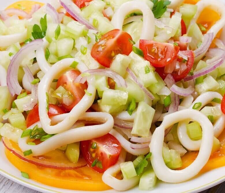 Любителів морепродуктів у всьому світі дедалі більшає. Хоч не всі мають можливість використовувати у стравах свіжих морських мешканців, але в мороженому стані ці делікатеси можуть запропонувати в будь-якому супермаркеті. Пропонуємо простий рецепт смачного та корисного овочевого салату з кальмарами.