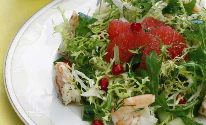 Готовим салат из креветок с грейпфрутом и гранатом
