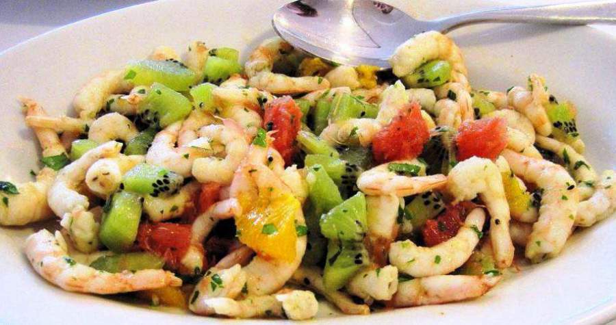 Готовим салат с креветками и фруктами
