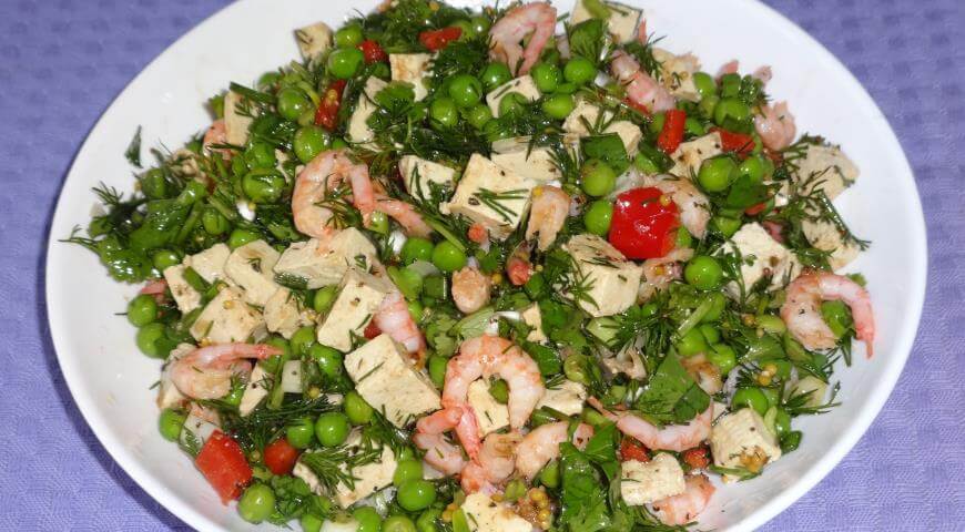 Готовим салат из тофу с креветками и овощами