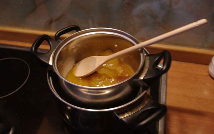 Самый оптимальный способ – растопить на водяной бане. Поставьте емкость с медом в кастрюлю большего размера с налитой водой. Причем ставьте не прямо на дно, а на металлическую сетку или в кастрюлю поменьше. Нагревая воду в кастрюле, вы растопите мед, медленно, но без потери полезных качеств.